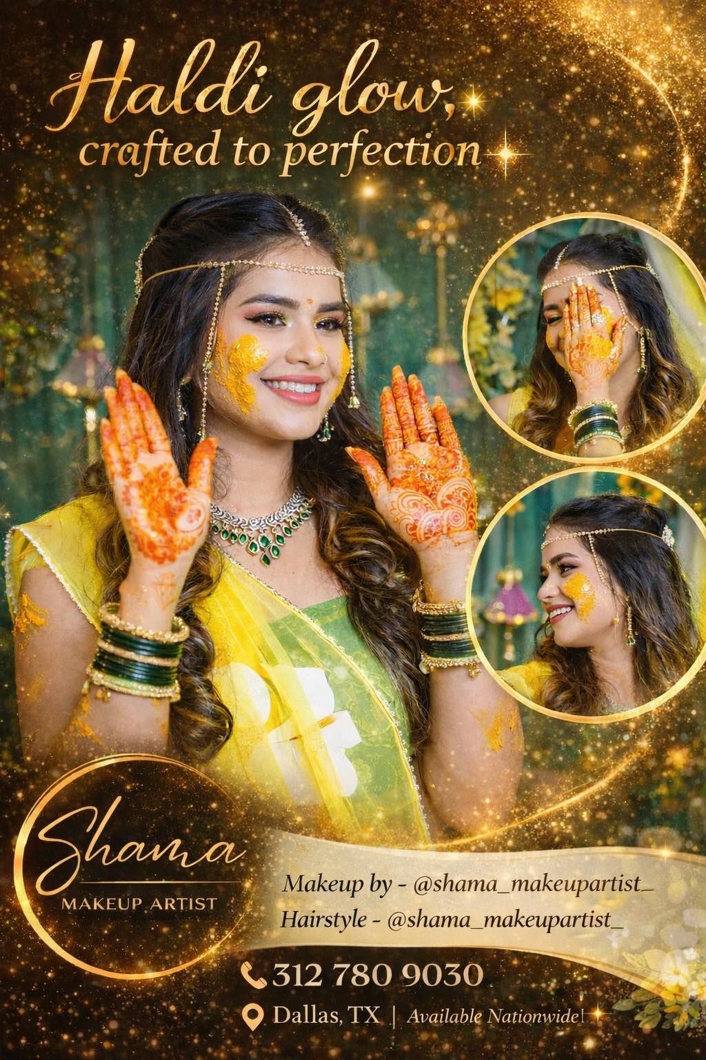 Makeup and Hairstyle services for Haldi ceremonies.
